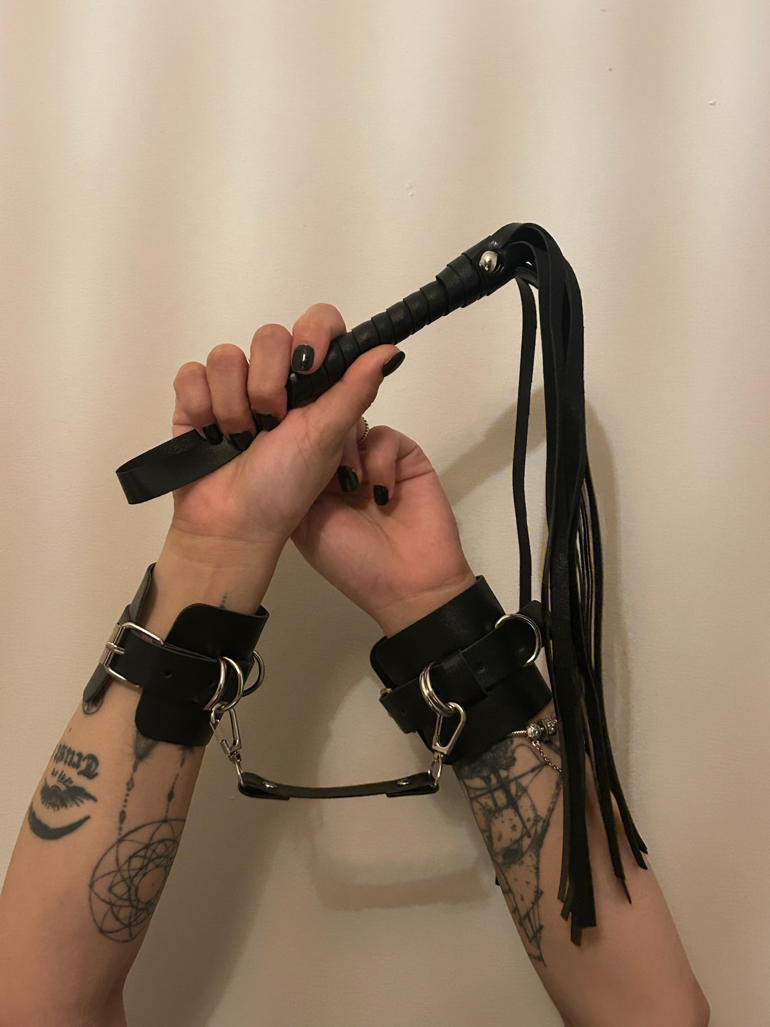 O conjuto perfeito pra elevar o nível do “Sentir se gostosa”: lingerie preta de renda ajustavel+ acessórios em couro regulável,